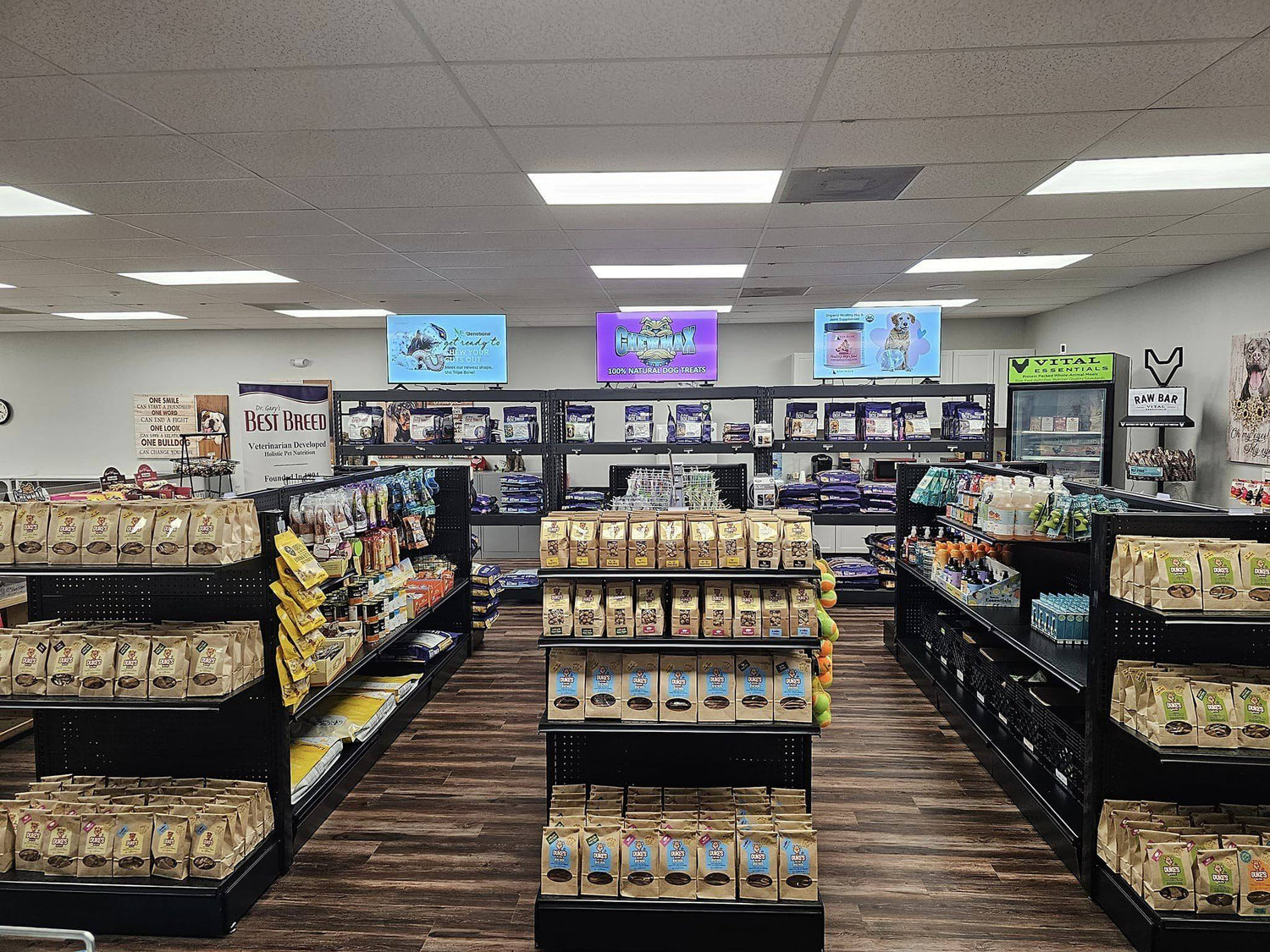 We have a full line of dog & cat products at our new retail location. Better Treats, Better Food, Better Health, Duke's Delites.