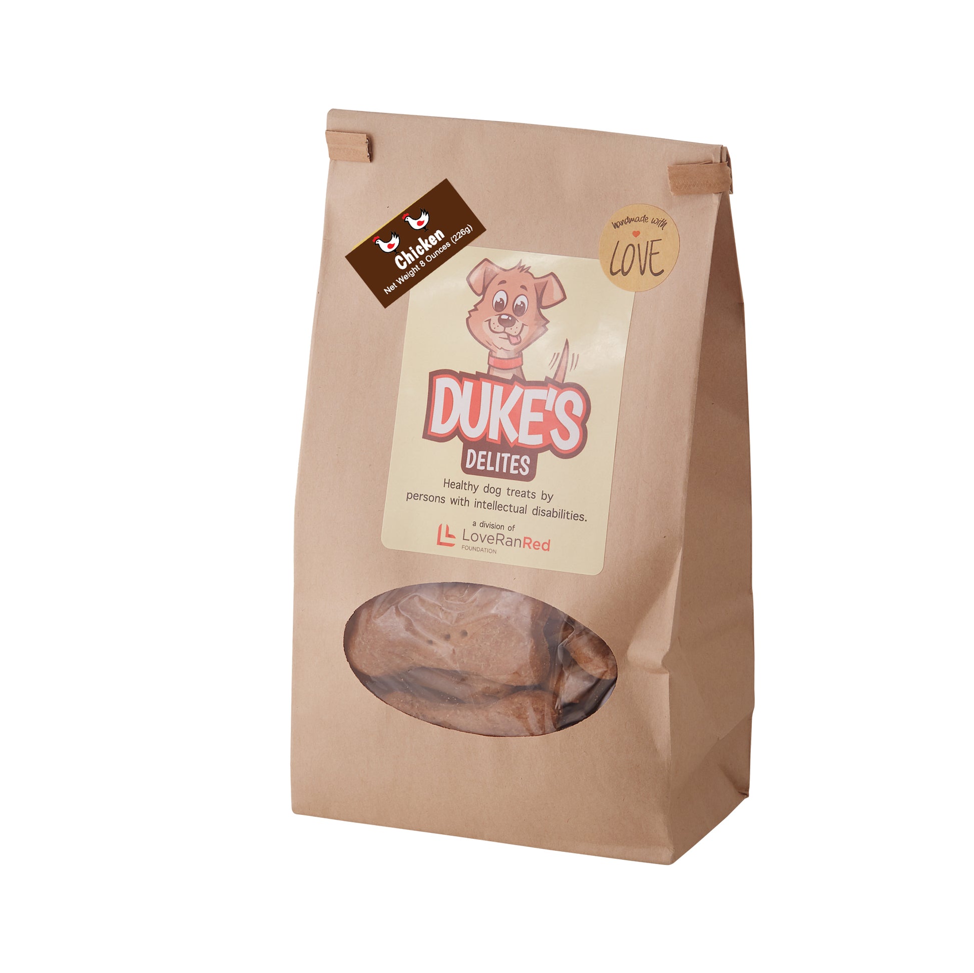 Chicken flavored bones baked fresh using wholesome ingredients with no added preservatives. Sales directly benefit employment of adults with Autism & Developmental Disabilities. Ingredients: Whole wheat flour, chicken broth, corn oil, white cornmeal. Guaranteed Analysis: Crude protein (min) 11%, crude fat (min) 22%, crude fiber (max) 1%, moisture (max) 3%.