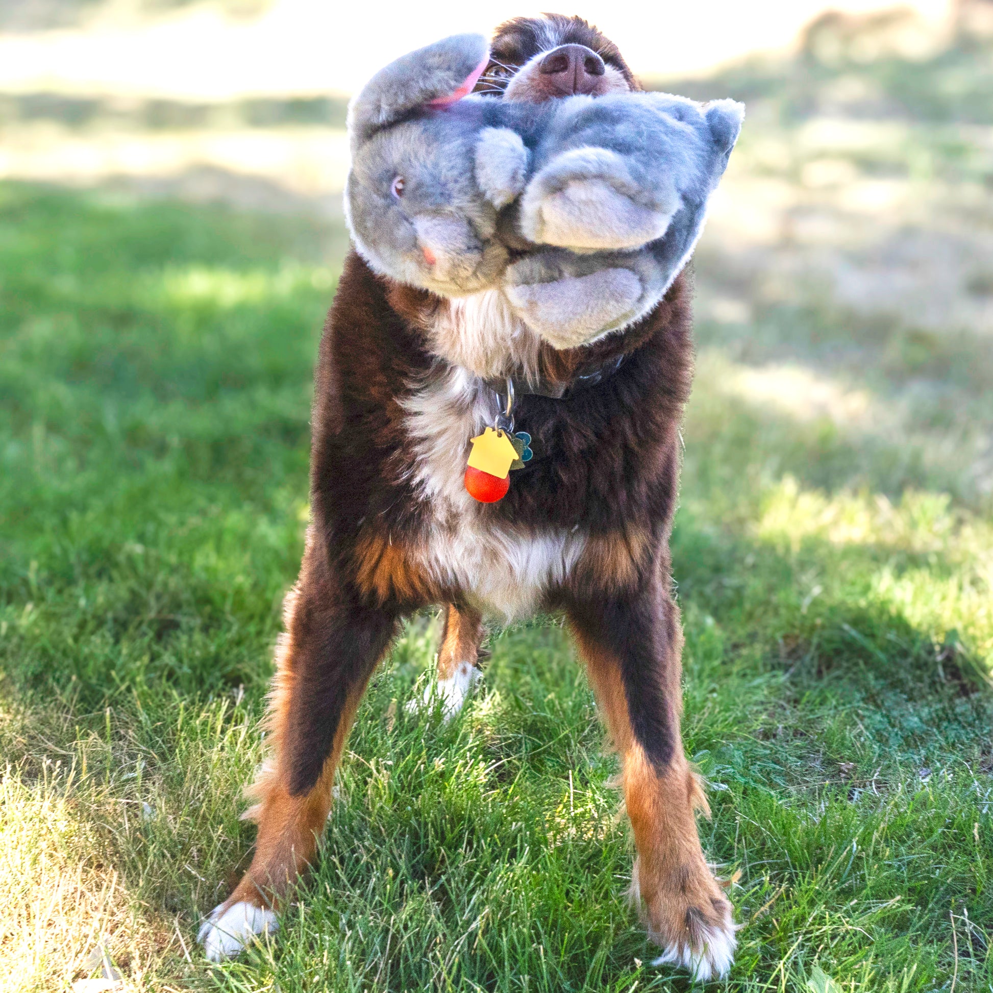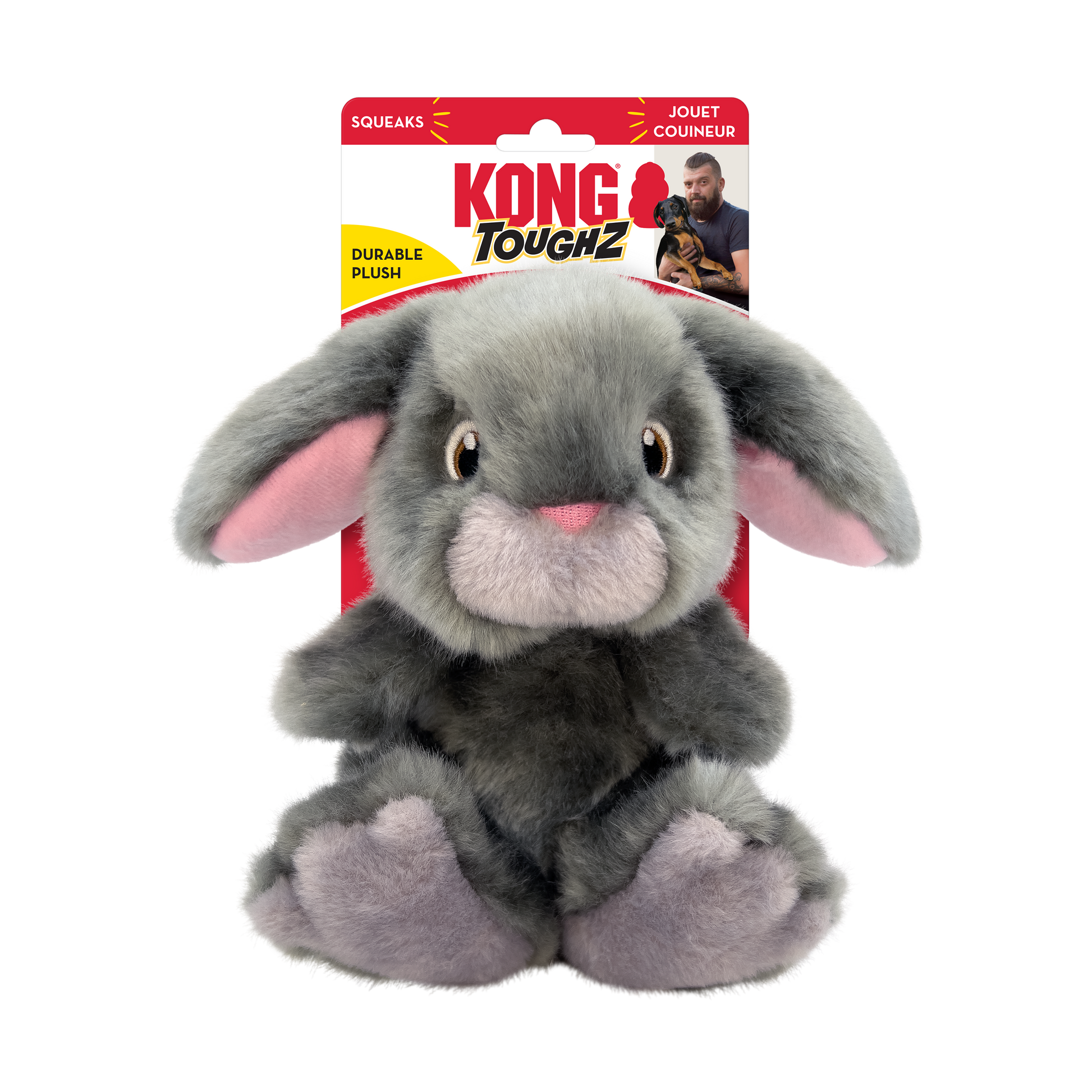 KONG Toughz are tough, squeaky, and snuggly, all wrapped up in one toy! Thrashing, shaking, and biting are no match for these super-durable plush toys, with an enticing double squeaker—one inside the other—that excites dogs’ play instincts. Ideal for bringing outdoor energy inside on cold and rainy days, and perfect for cuddling after rounds of romping. Toughz medium size is perfect for most dogs.