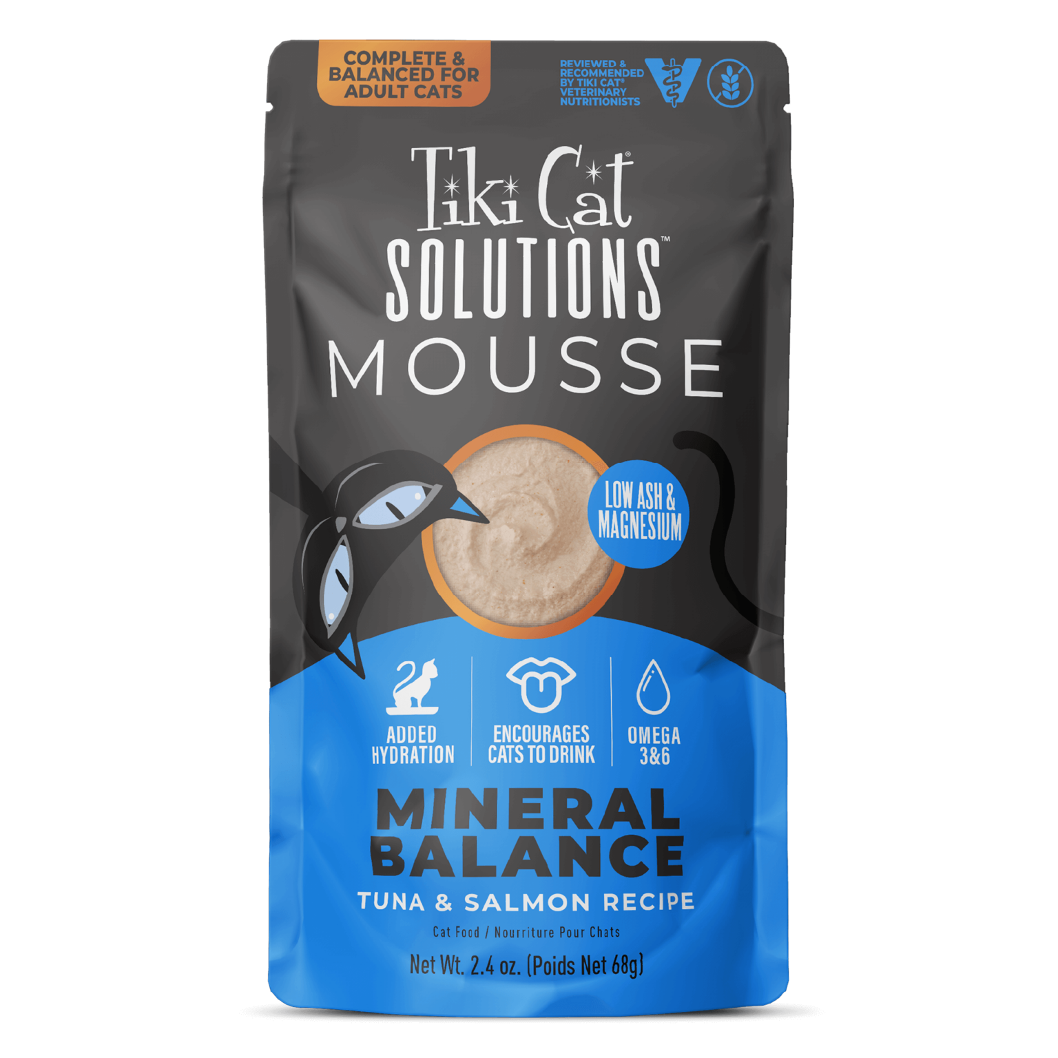 Supports Balanced Mineral Levels. Tiki Cat® Solutions™ Mineral Balance Mousse is low in ash and magnesium and helps promote a healthy mineral balance.