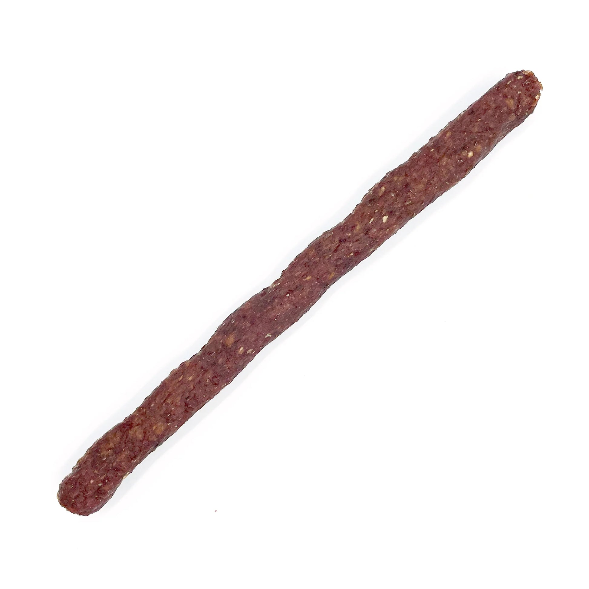 This chew is made up of ground beef, beef skin, and beef pizzle, that has been mixed up and formed into a stick shape and baked.