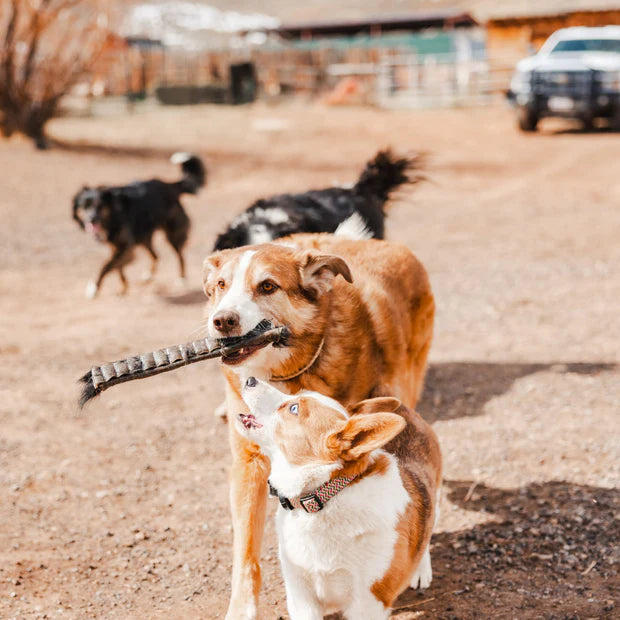 Ugly Chews are made from fresh, whole cowhide. No processing, no chemicals. And just like wolves, coyotes, and dingoes don’t choke when chewing the hide of their prey, your dog is unlikely to choke on an Ugly Chew.