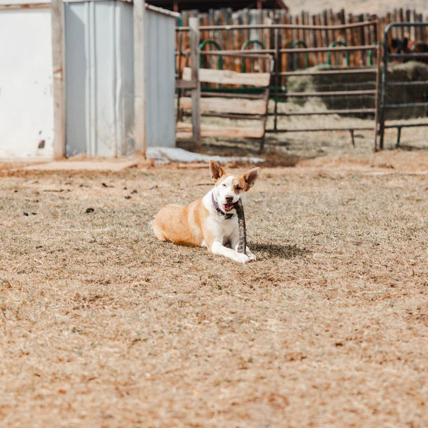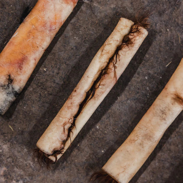These full-hide dog chews are great for your power-chewer. By leaving the hair on, the chews last longer while also cleaning up the entire digestive system. You won't find any industrial chemicals or additives in these hides. They are 100% natural beef hides sourced from local Wyoming ranches.